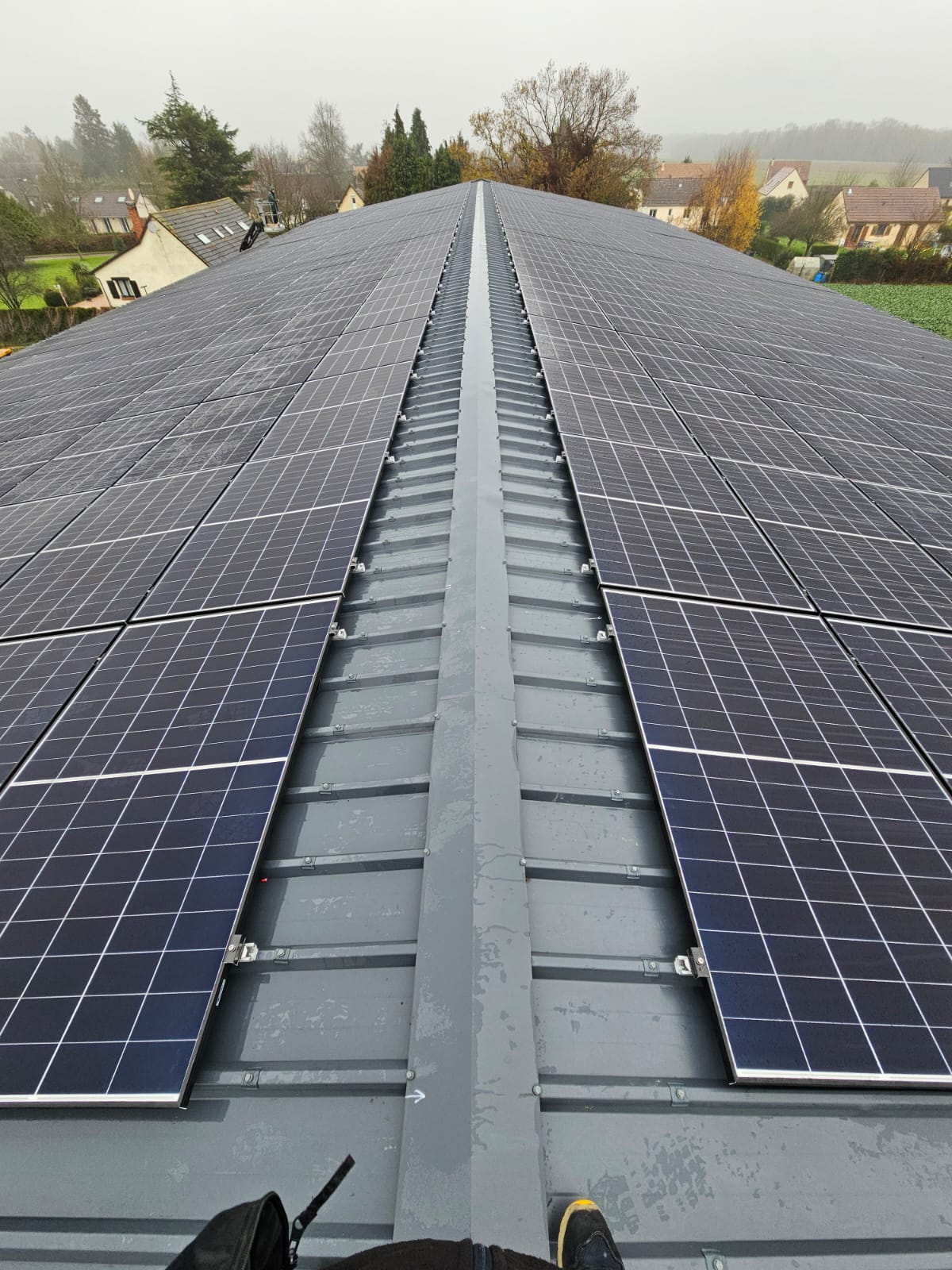 Le résultat final présente des panneaux solaires posés uniformément et fixés solidement sur la toiture métallique, preuve d’un travail rigoureux. La procédure s’appuie sur des étapes claires : la pose, la fixation puis la vérification de chaque élément. Chaque panneau est placé avec soin pour garantir stabilité et durabilité, tout en optimisant la captation solaire. La fixation sur le toit métallique respecte les contraintes spécifiques de ce type de structure, assurant ainsi une bonne tenue face aux intempéries.